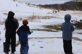 The Dune Trail is a 3.5 mile round trip to Lake Michigan trail, requiring approximately three to four hours to complete. The path is adorned with grasses, shrubs, and wildflowers of the dunes. The terrain is steep and is strenuous with rugged dunes and loose sand. Drinking water, sturdy shoes, suntan lotion, a hat, and sunglasses are recommended. To access the trailhead, go to The Dune Climb off M-109, which is located 5 miles north of Empire. The National Lakeshore charges a visitor fee of $20 per vehicle for a seven day pass or $40 for an annual pass. Mountain bikes are not allowed on any of the National Park trails. Pets must be kept on a six-foot maximum leash.