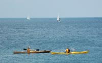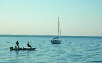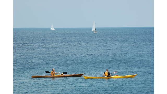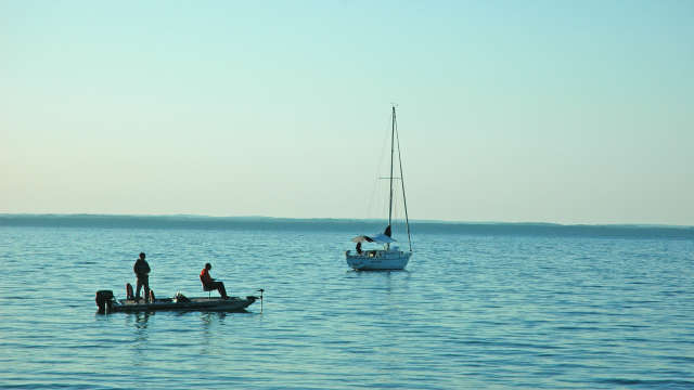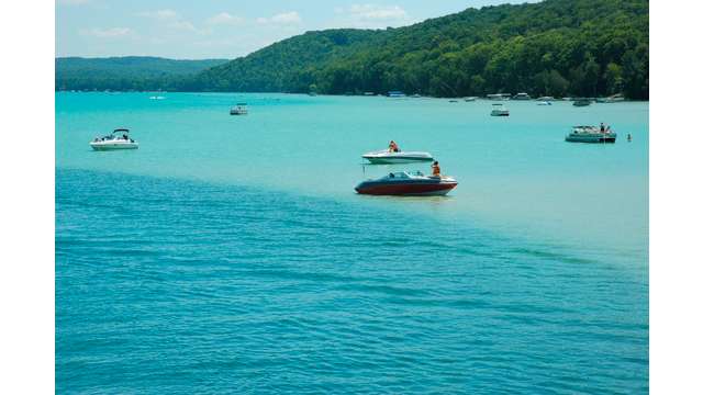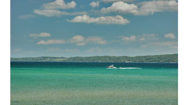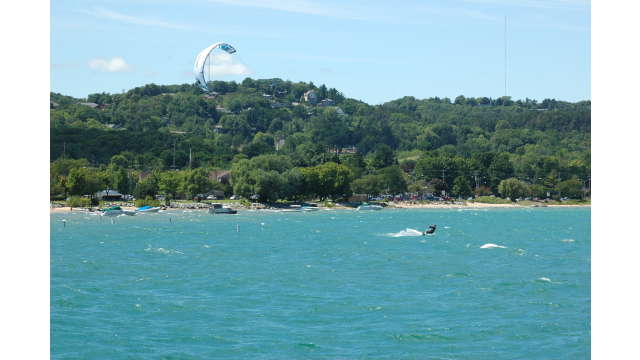Boating on West Grand Traverse Bay in front of Clinch Park Beach.