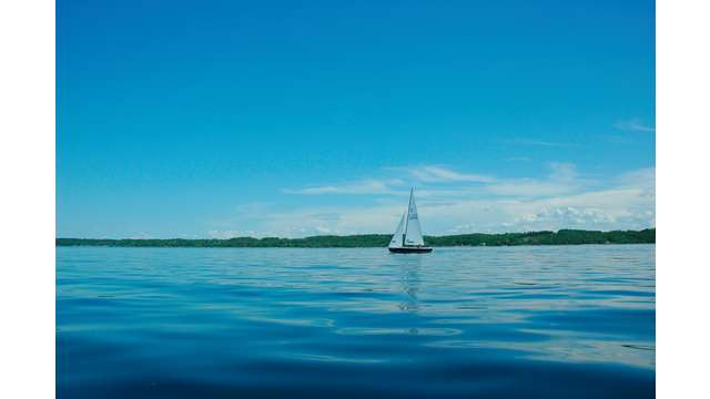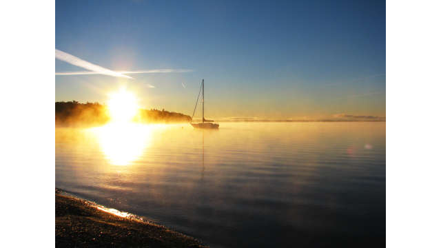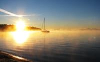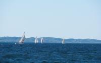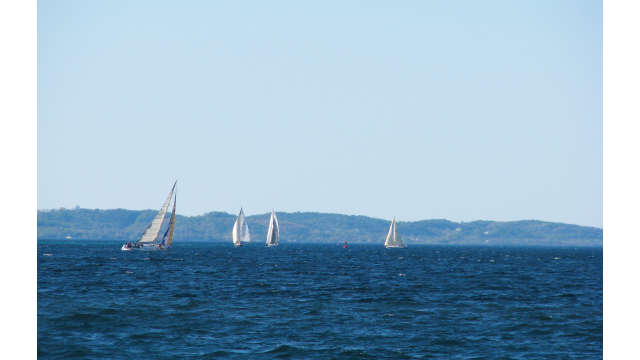 Sailing by Haserot Beach on East Grand Traverse Bay near Old Mission.