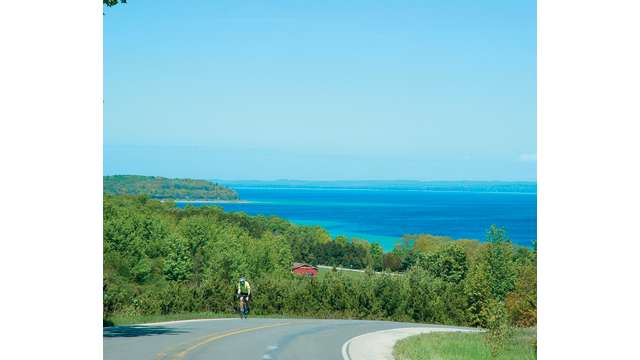 Biking on Smokey Hollow Road on Old Mission Peninsula.