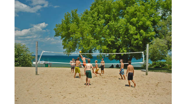 Play a game of volleyball at West End Beach on West Grand Traverse Bay.