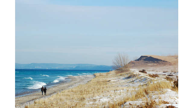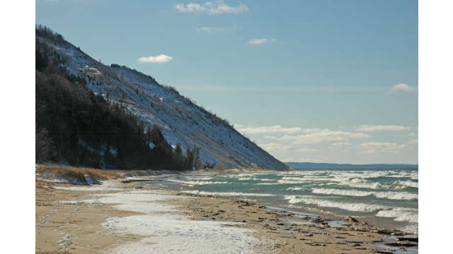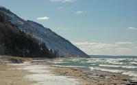 The winter shoreline at Empire Beach at the Sleeping Bear Dunes National Lakeshore.