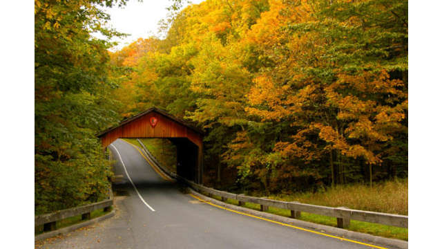 Take a drive along Pierce Stocking Drive at the Sleeping Bear Dunes National Lakeshore and see the covered bridge in Fall.