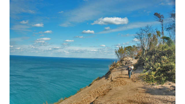Hike out on the Empire Bluffs Trail for amazing views of Lake Michigan at the Sleeping Bear Dunes National Lakeshore.